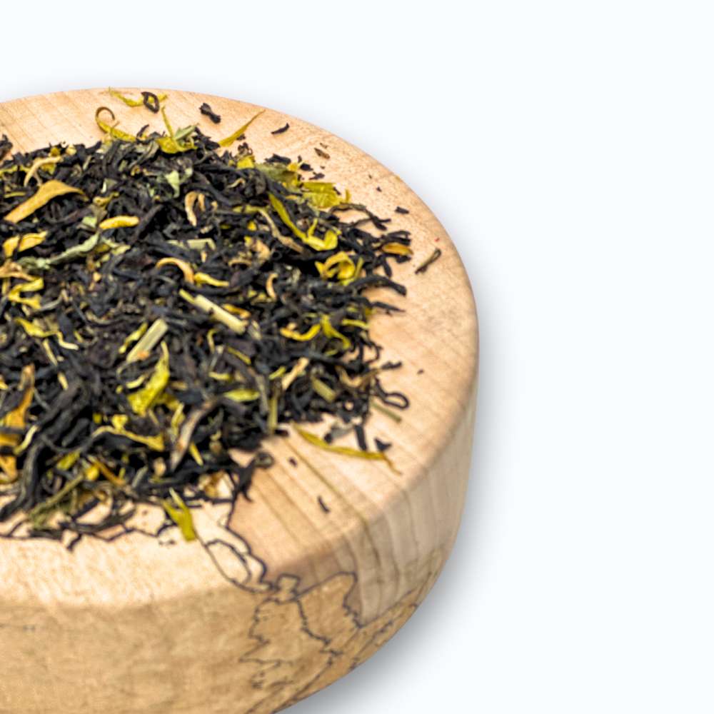 Earl Grey Lord of Grey to klasyczna czarna herbata wzbogacona wyrafinowanymi składnikami, które nadają jej wyjątkowy, cytrusowy charakter. Wysokiej jakości czarna herbata (93%) stanowi bazę dla subtelnych nut bergamotki, która nadaje naparowi orzeźwiający, cytrusowy smak. Z dodatkiem trawy cytrynowej, kwiatów pomarańczy i całych liści werbeny cytrynowej herbata zyskuje delikatną, ziołową świeżość, która idealnie komponuje się z klasycznym aromatem Earl Grey. Płatki nagietka i naturalny aromat dopełniają tej mieszanki eleganckiego, kwiatowego akcentu.