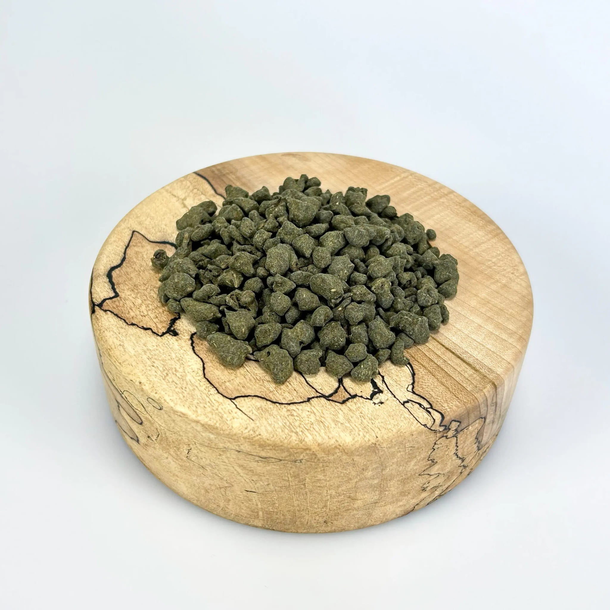 Wygląd tej herbaty jest niezwykle interesujący – ciemnozielone kuleczki, które rozwijają się podczas parzenia, ujawniając tajemnicze wnętrze zmielonego żeń-szenia.
