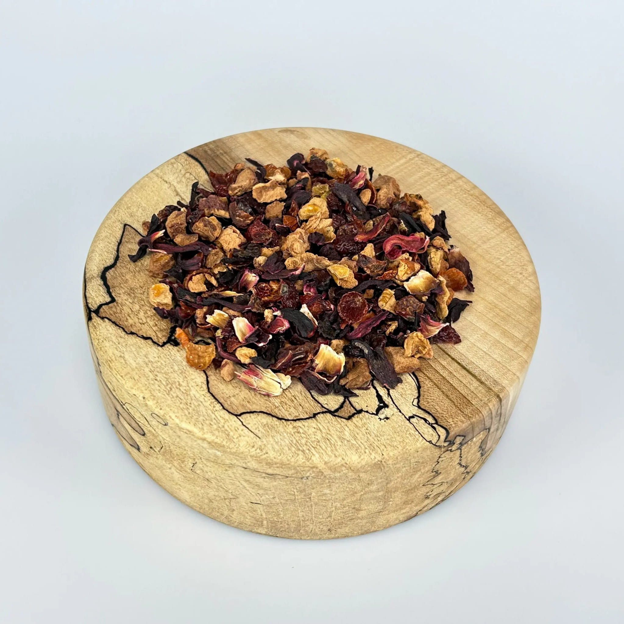 Owoce jabłka i dzikiej róży nadają temu naparowi wyjątkową owocowość, a dodatek hibiskusa nadaje mu delikatnej kwasowości.