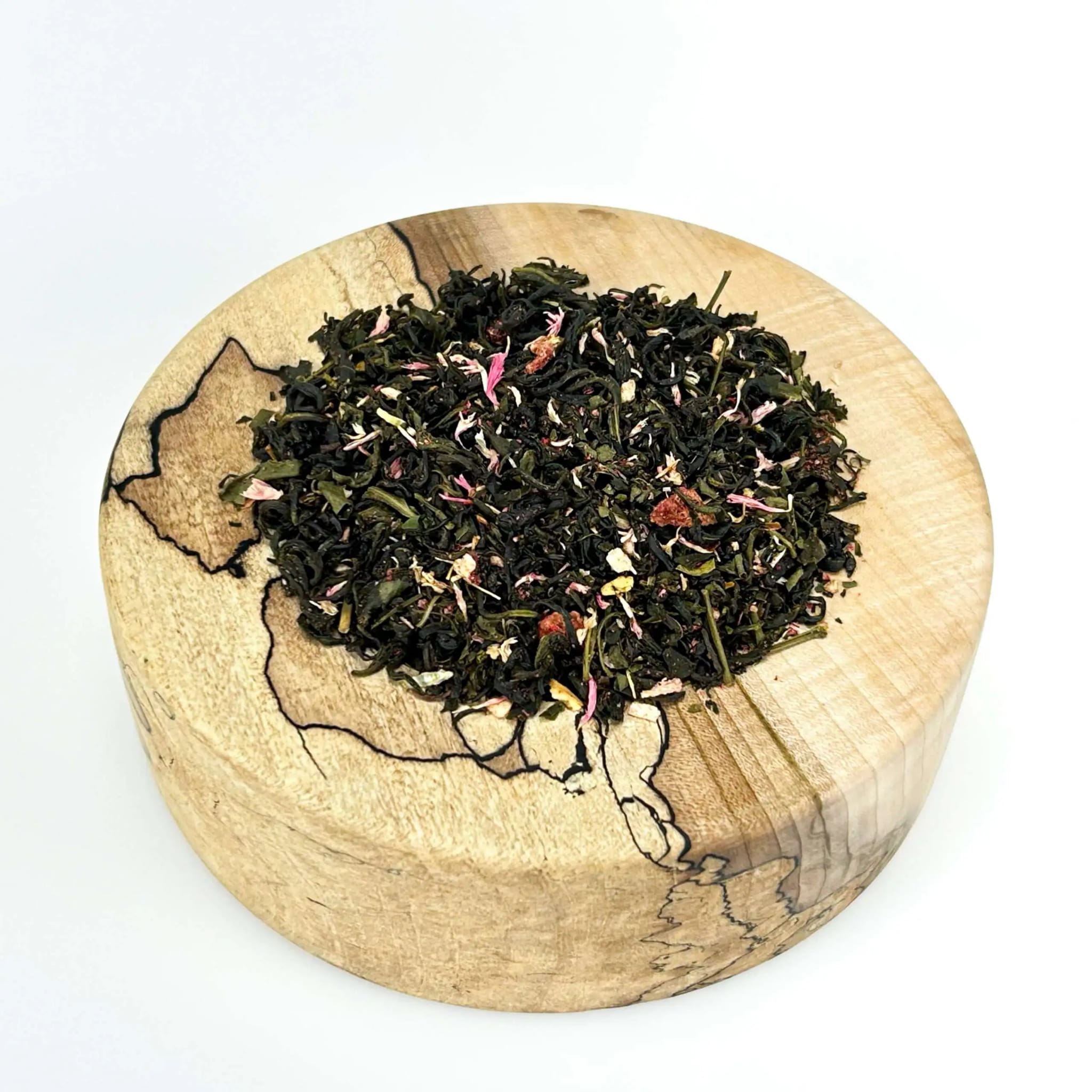 Herbata Truskawka Rabarbar to aromatyzowana herbata zielona, która łączy w sobie wyjątkowe smaki i aromaty. Delikatna zielona herbata jest wzbogacona o kawałki rabarbaru, kwiaty truskawek, płatki chabru różowego i płatki granatu, tworząc owocowo – kwiatowy mix.