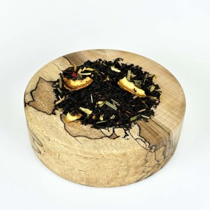 Skład “Żaru Pustyni” obejmuje czarną herbatę Cejlon, plasterki cytryny, trawę cytrynową, aromat naturalny, kawałki imbiru, biały pieprz, kwiatki kaktusa, czerwony pieprz, kawałki drzewa sandałowego, liście aloesu i płatki ostu. Te różnorodne składniki tworzą niepowtarzalny bukiet smakowy, który pobudza i wspomaga trawienie.